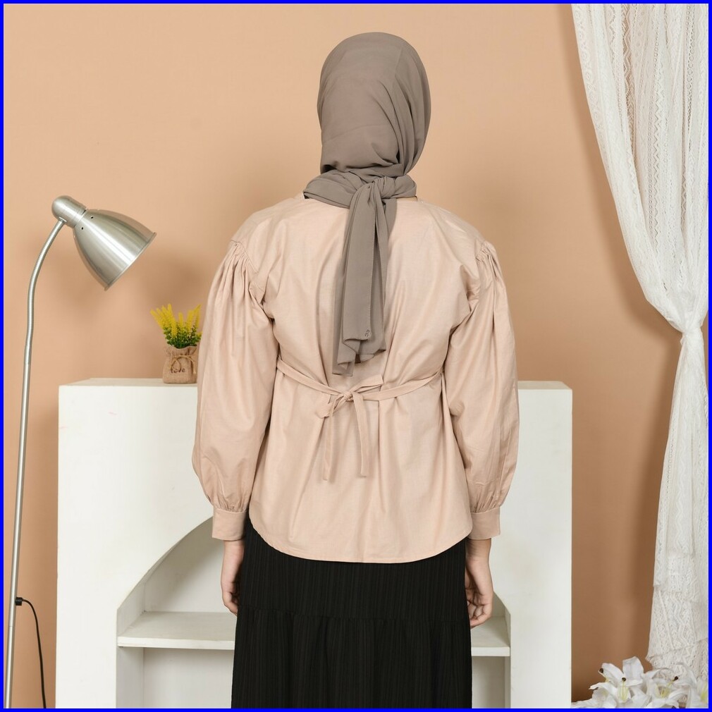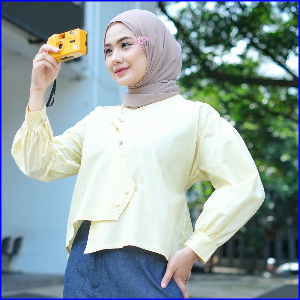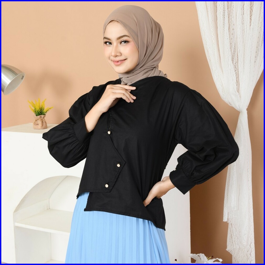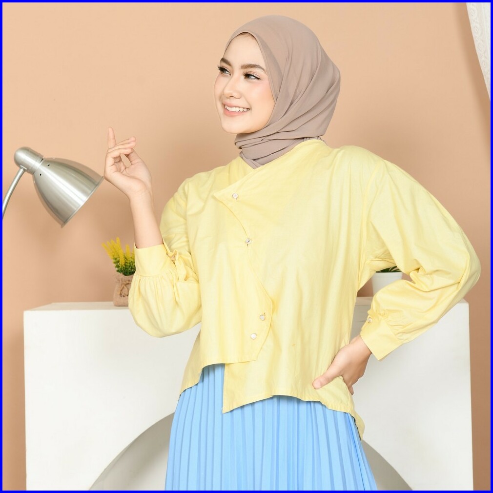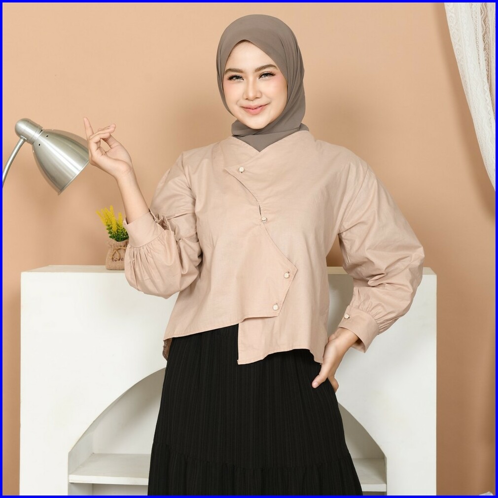 Mybamus Cheryl Poplin Blouse Atasan Semi Crop Lengan Panjang Wanita Kekinian