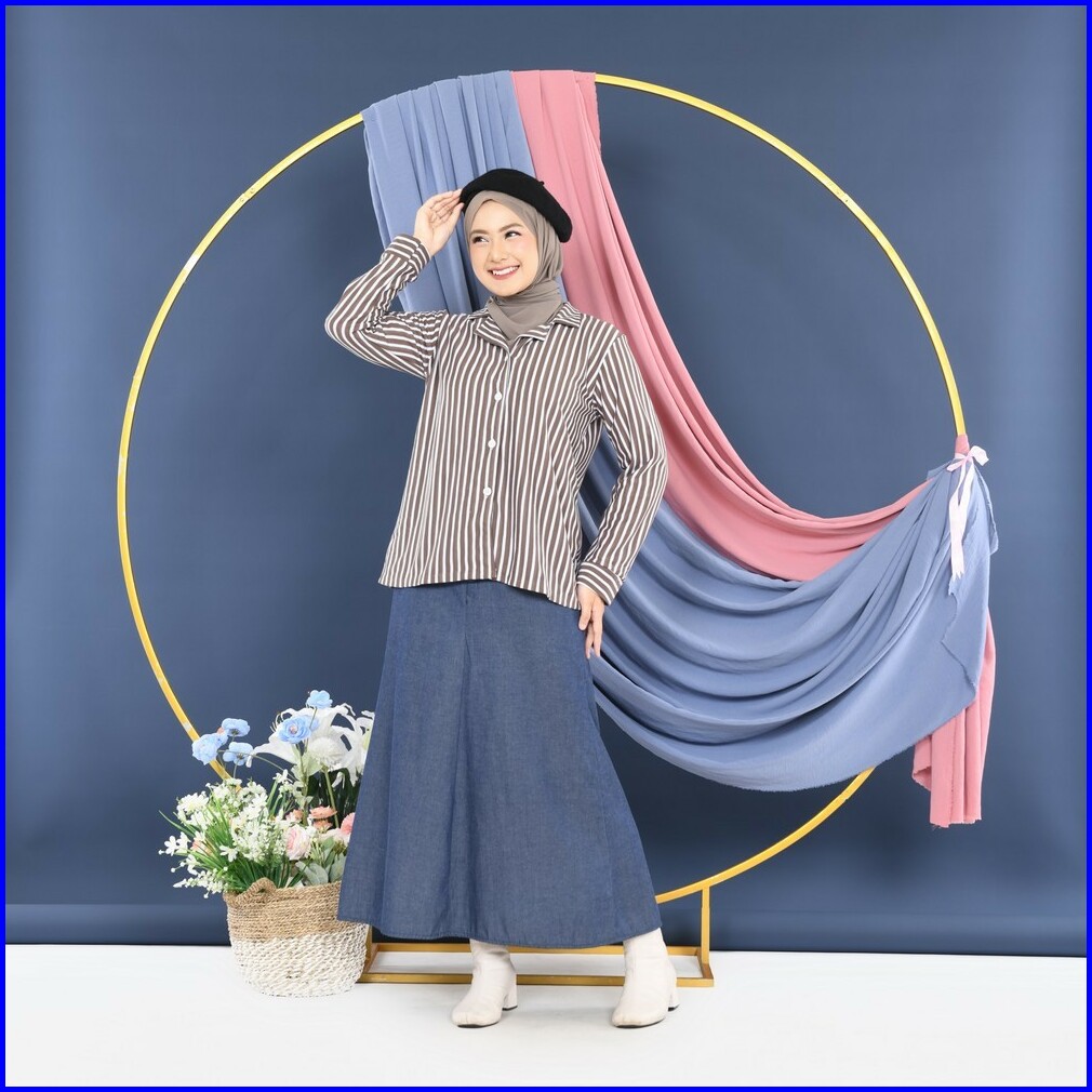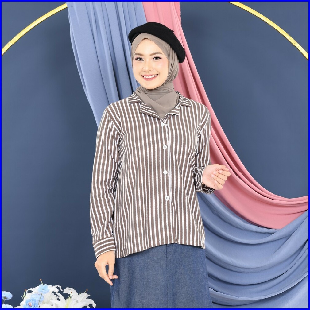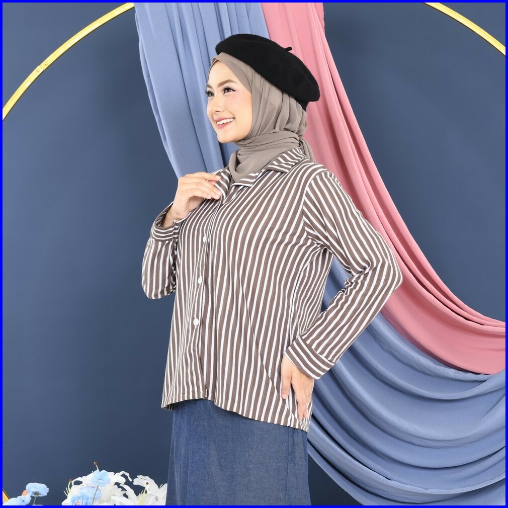 Mybamus Behati Stripe Shirt Ginger Bread M16133 R33s3 - Atasan Muslim