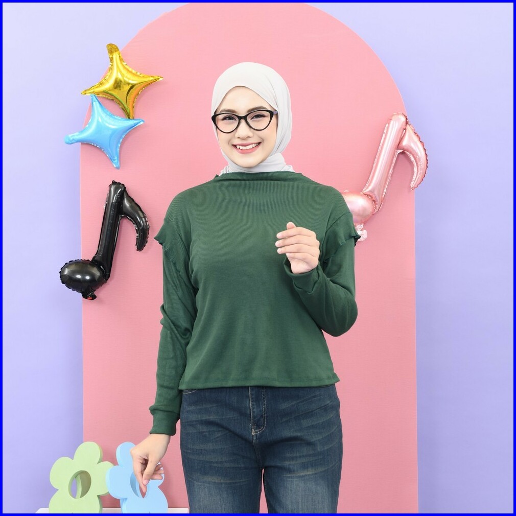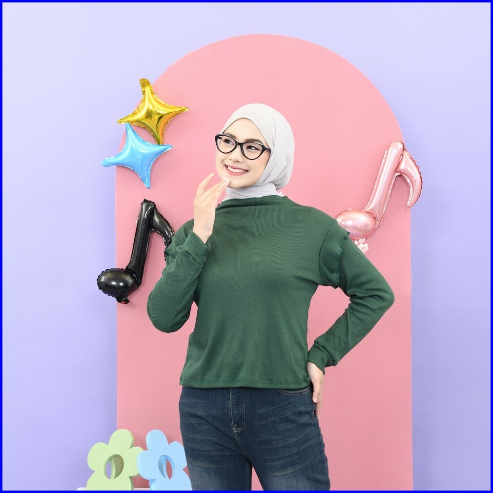 Mybamus X Evazulaeva - Jema Rib Tops Atasan Muslim Wanita Atasan Rib Lengan Panjang