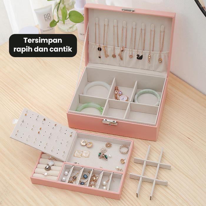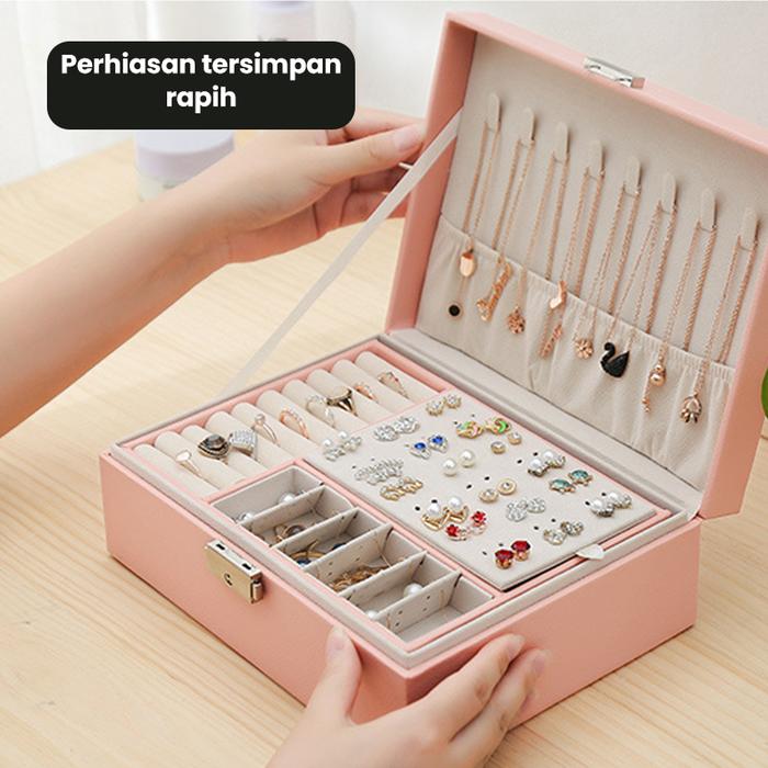 [PROMO] KOTAK PERHIASAN KOTAK CINCIN KALUNG TEMPAT PENYIMPANAN JEWELRY BOX CASE ANTING CINCIN AKSESORIS SERBAGUNA HDK310 HITAM