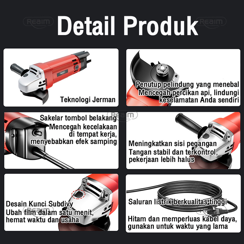 [Mall] MESIN GERINDA REAIM BERKUALITAS GERINDA TANGAN LISTRIK ANGLE GRINDER POLES PIRINGAN AMPLAS MAKITA MAKTEC BOSCH