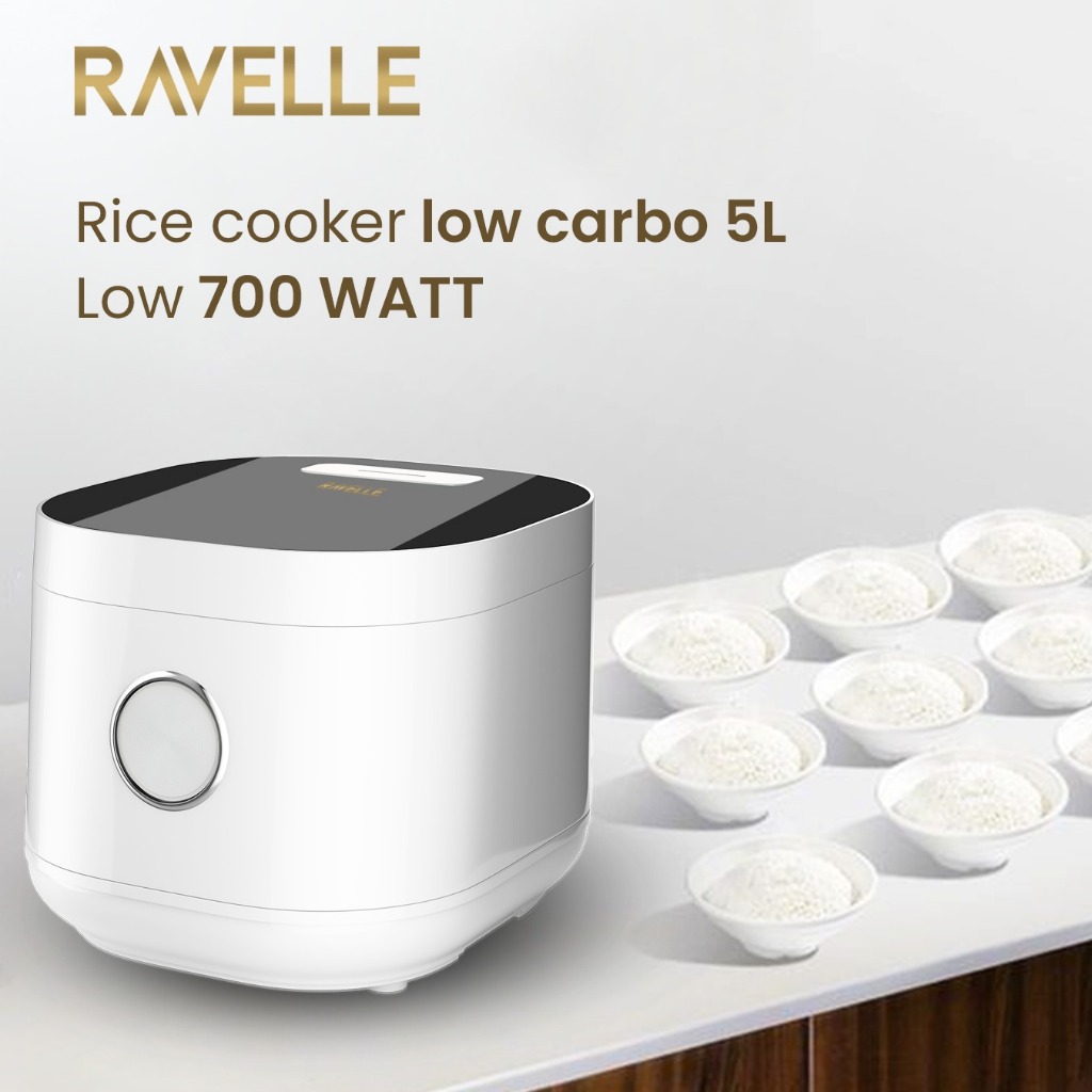 RAVELLE NOVÉ Rice Cooker Digital Low Carbo 1.8 Liter Nasi (5 Liter) - Penanak Nasi Low Watt ( Stainless Steel inner Pot