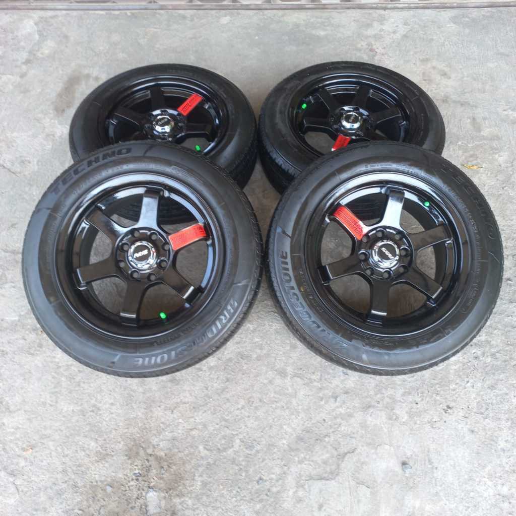 ( PROMO) PAKET 1 SET VELG TE37 SL BARU ban second R14 H4 dbl vcd 100/114 lbr 6 rt Et 35 Hitam