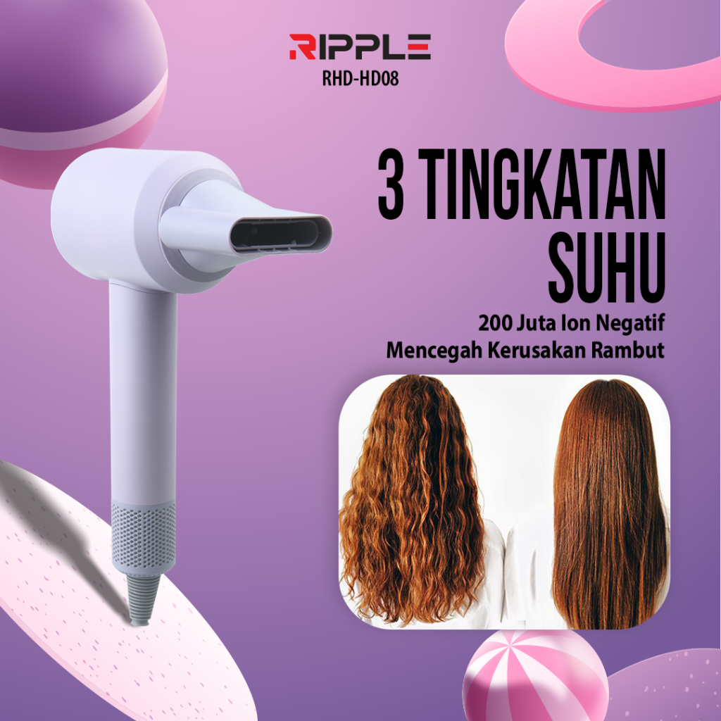 Ripple High Speed Hair Dryer Pengering Rambut Portable Silent Hair Dryer with Nozzle Fast Drying