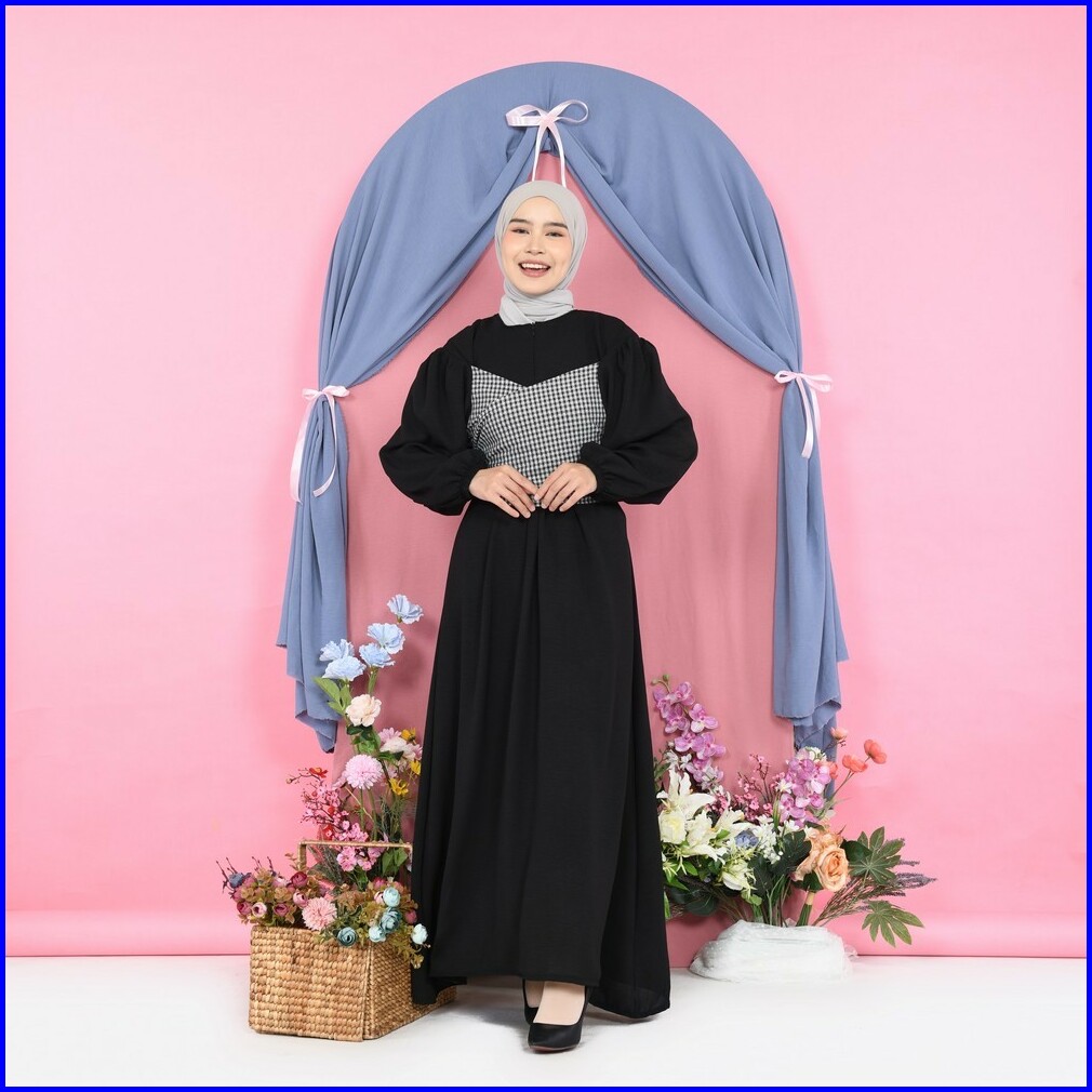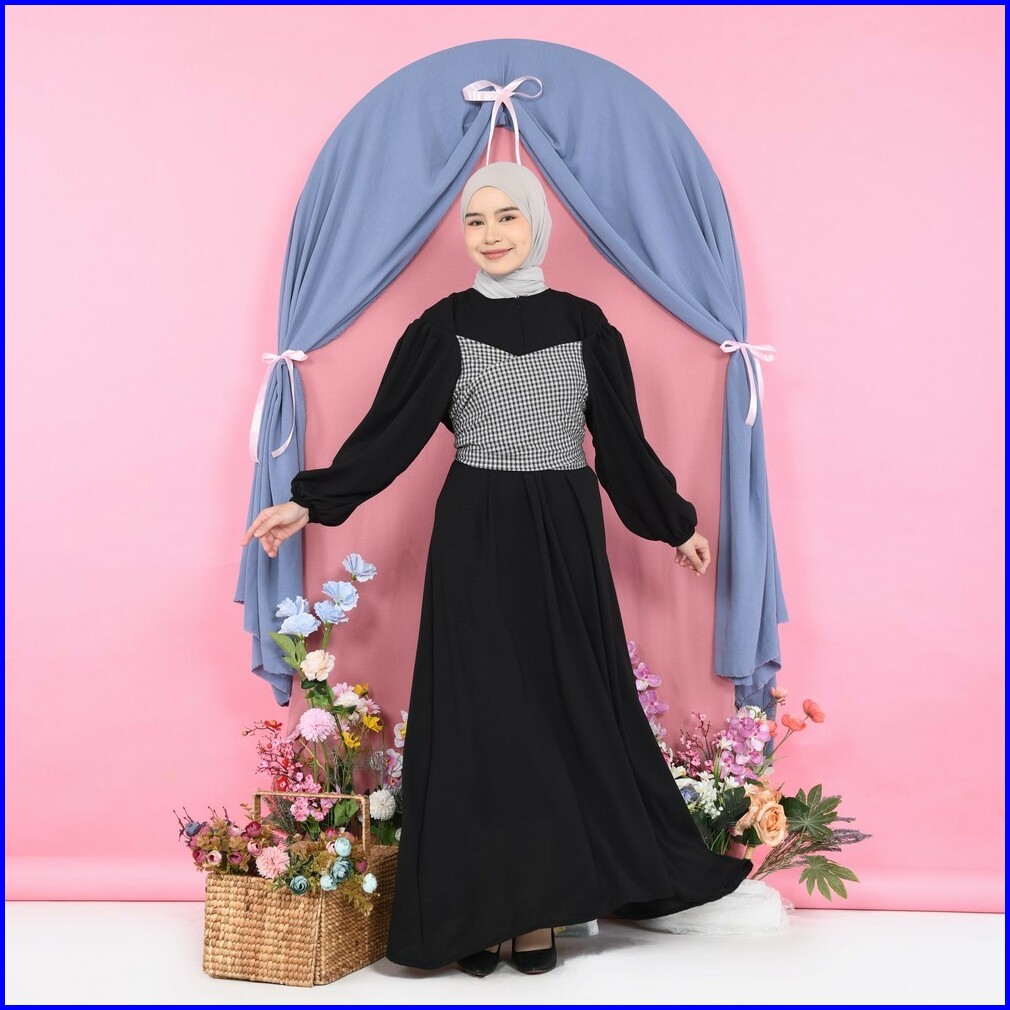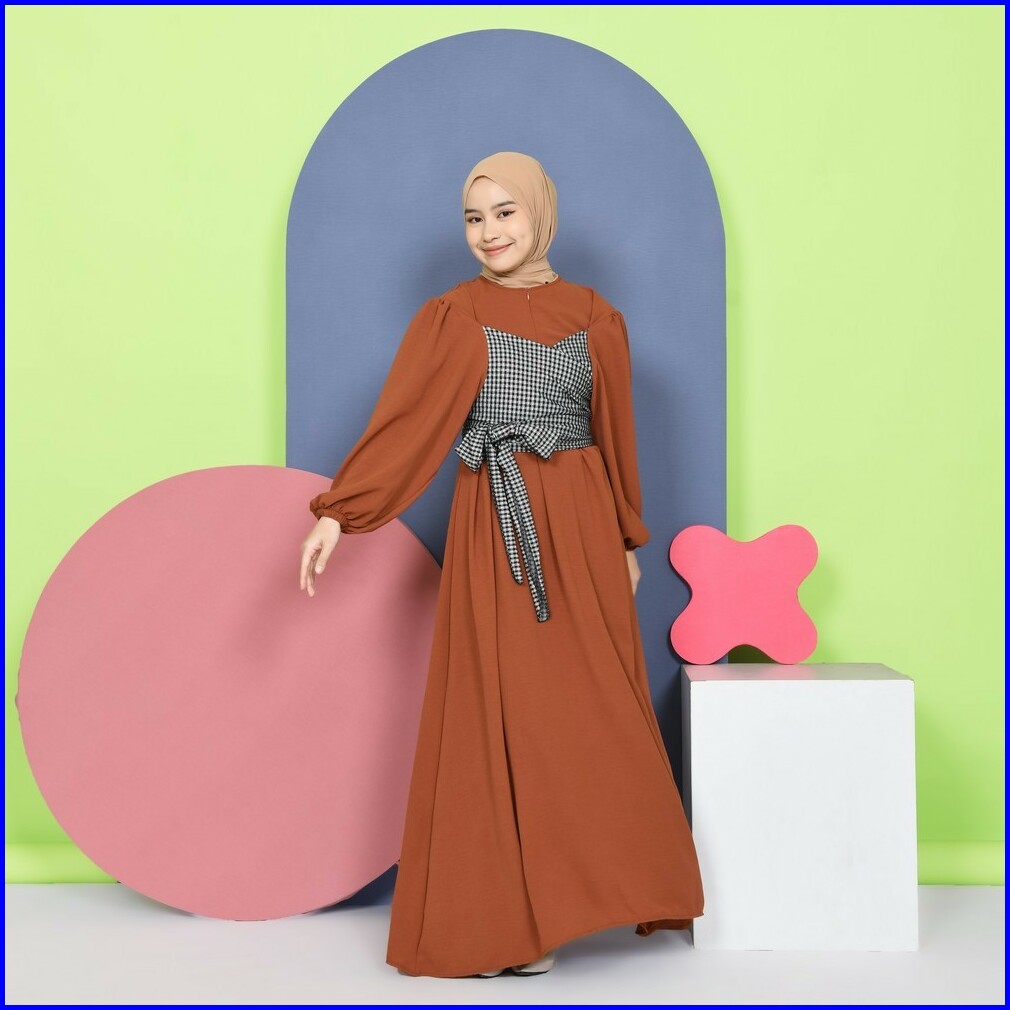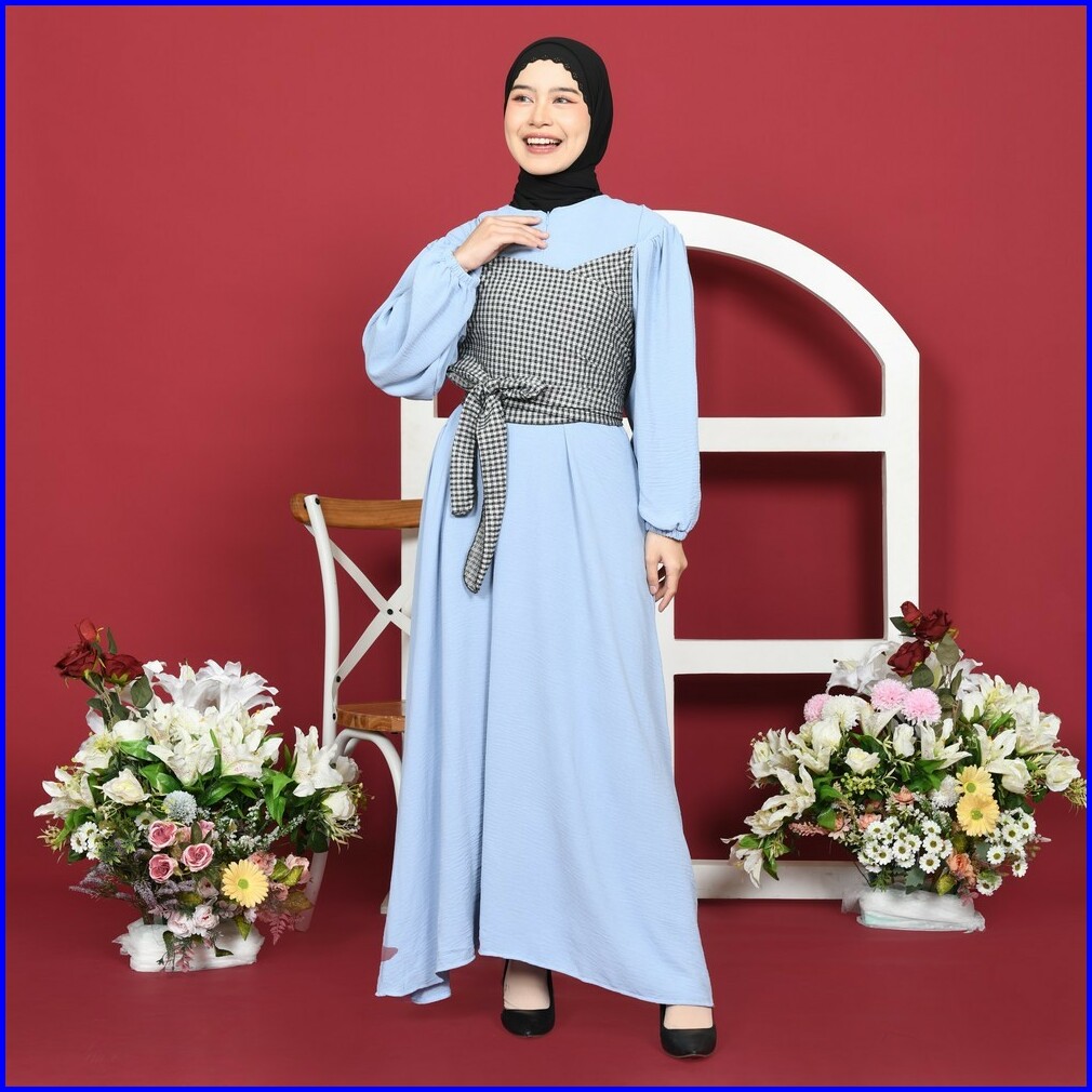 Mybamus Jane Maxidress Dress Lengan Panjang Kerut Dress Tali Pinggang Gamis Lebaran 2025