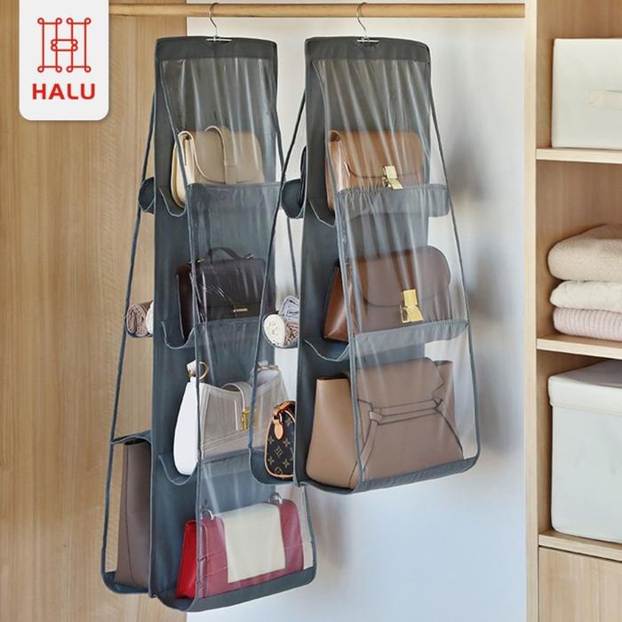 [PROMO] RAK TAS GANTUNG 6 & 8 SUSUN BAG ORGANIZER POLOS HDK301 ABU 8 PETAK