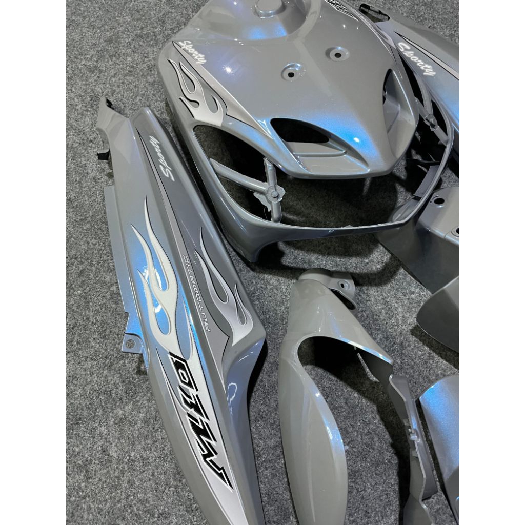 Cover full body halus Yamaha mio smile warna nardo lembayung biru plus striping transparan