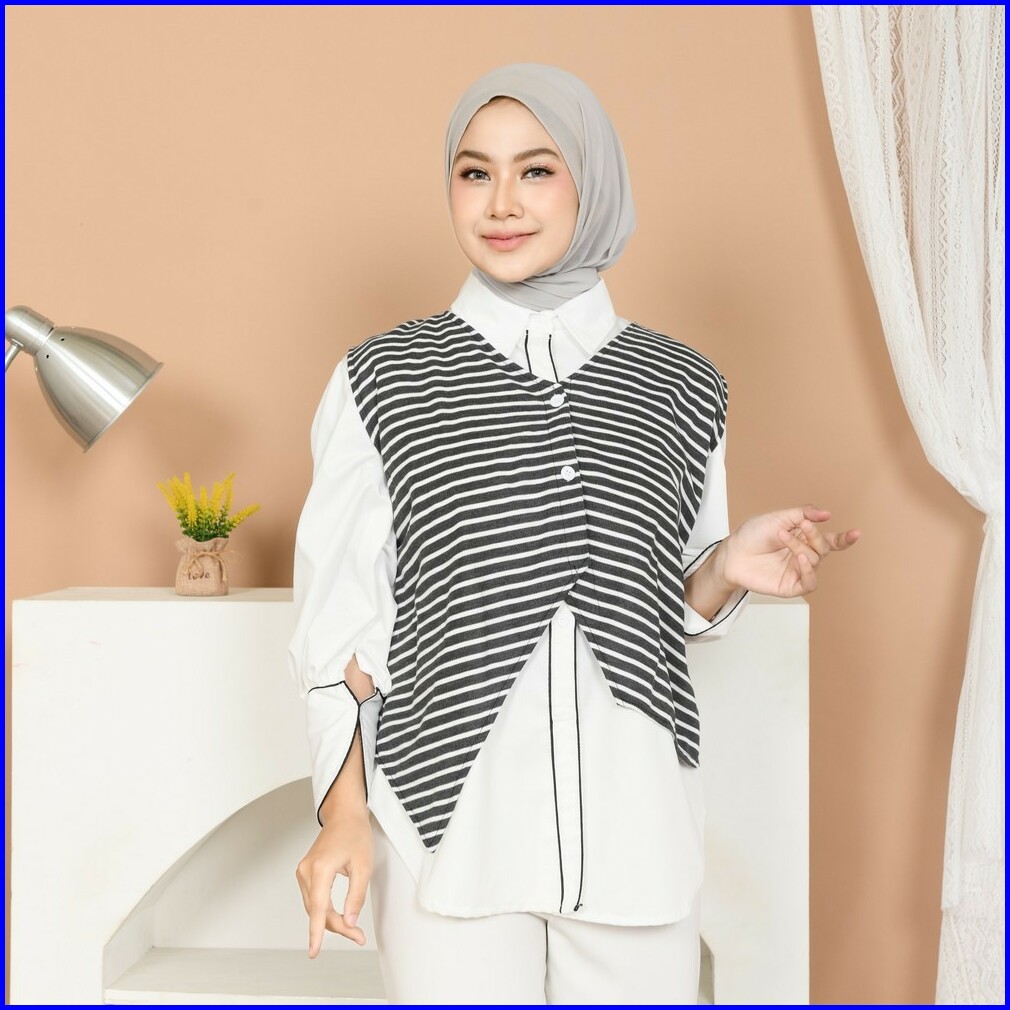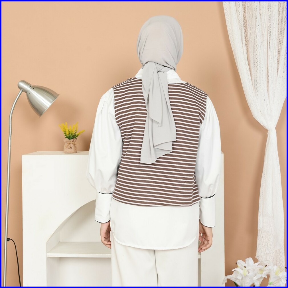Mybamus Aro Outer Stripe Wanita Kekinian Vest Asimetris Korean Style