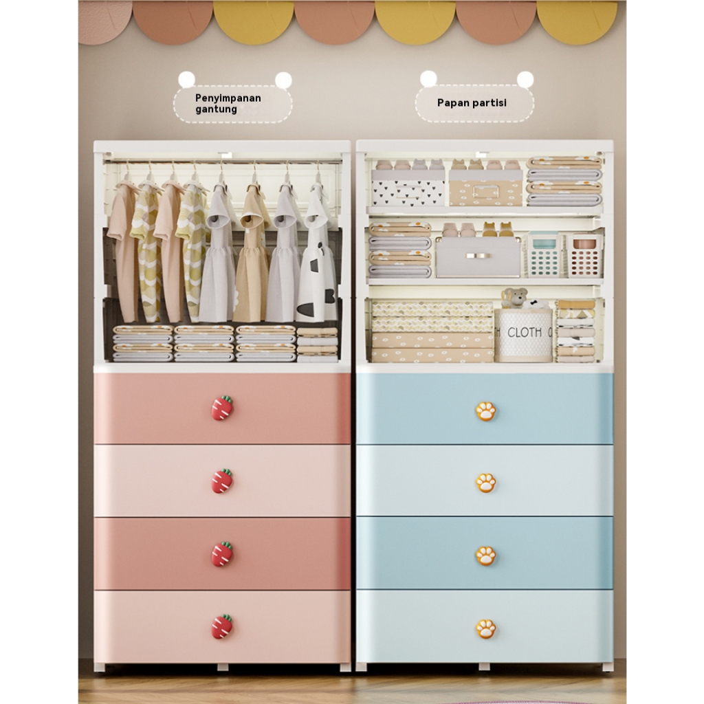 Aesthetic Lemari Plastik Pakaian Kelinci Super Lucu 2 3 4 5 Tingkat Lemari Baju Anak Super Gemas