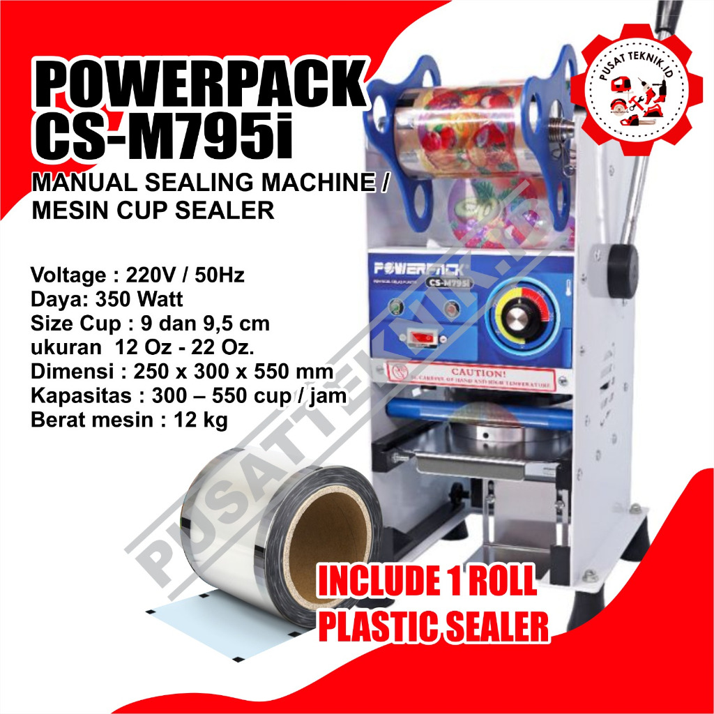 POWERPACK CS-M795i FREE ROLL PLASTIK CUP SEALER ALAT PRESS GELAS POWERPACK D1 CS M795i/CS M795B