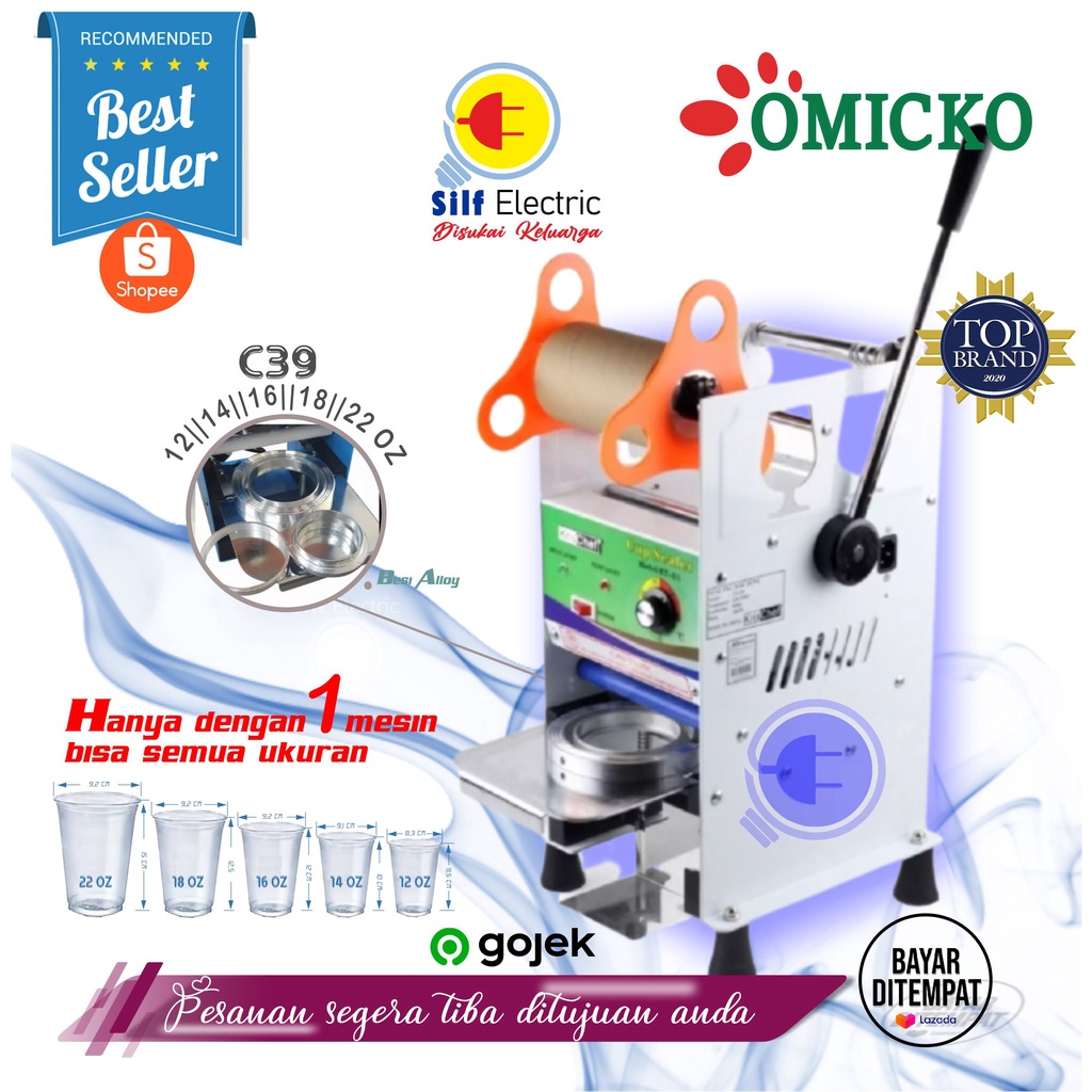 OMICKO C-39 Cup Sealer /Alat Perekat Plastik Minuman Maks 12 , 14 , 16 , 18 , 22 OZ