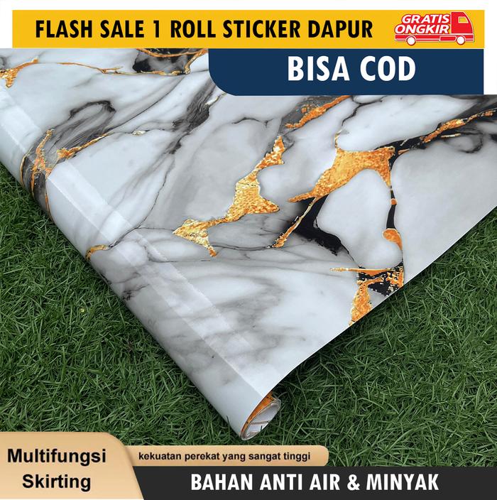 Stiker Dapur Marmer Putih 3m45 Ukuran 60cm x 3m Anti Air dan Api Sooku Dinding Wallpaper - Y6605