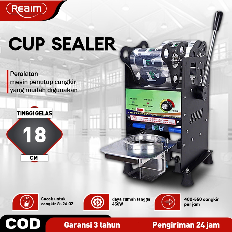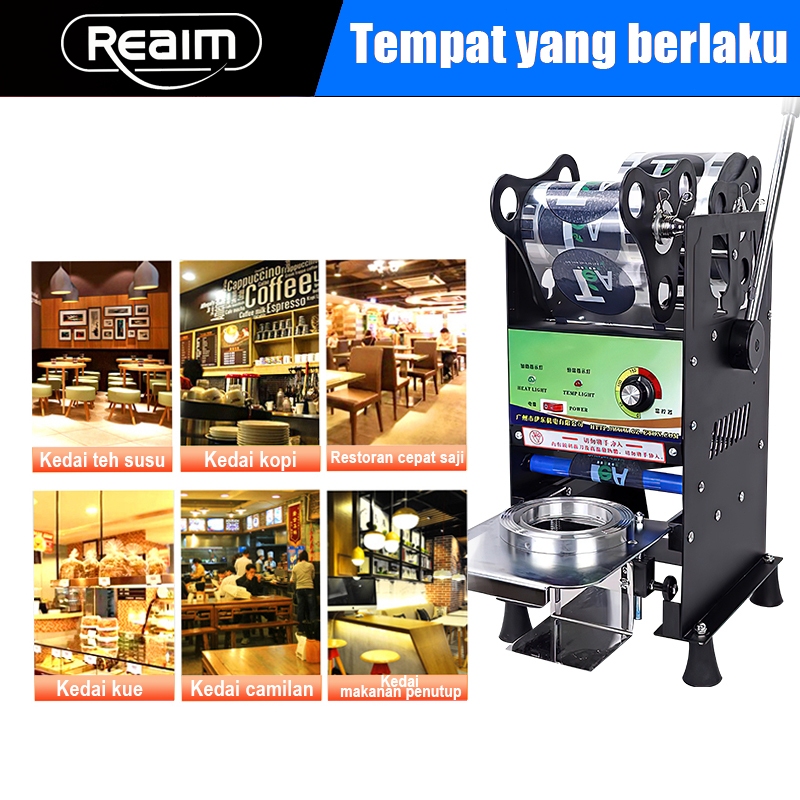 Reaim mesin pres cup sealer gelas plastik sealer 8-26 Oz Hitam Mesin Asli Plastik Sealing Machine