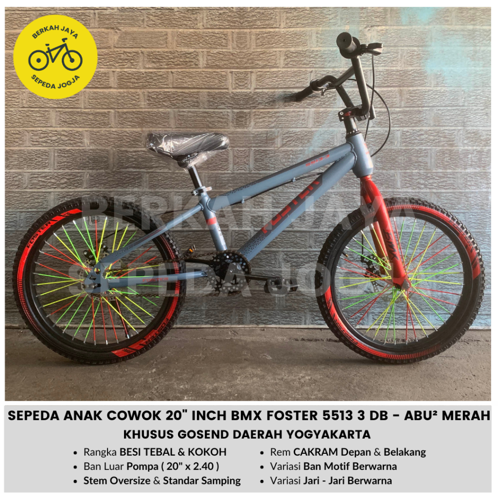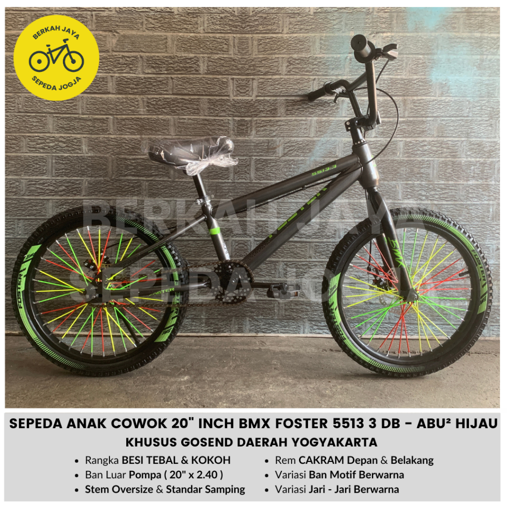 Sepeda Anak Cowok BMX 20 inch Foster 5513 3 DB Oversize Rem Cakram Ban 2.40 Ruji Warna