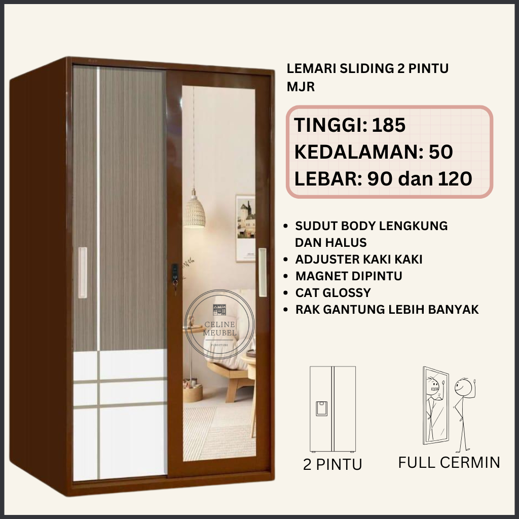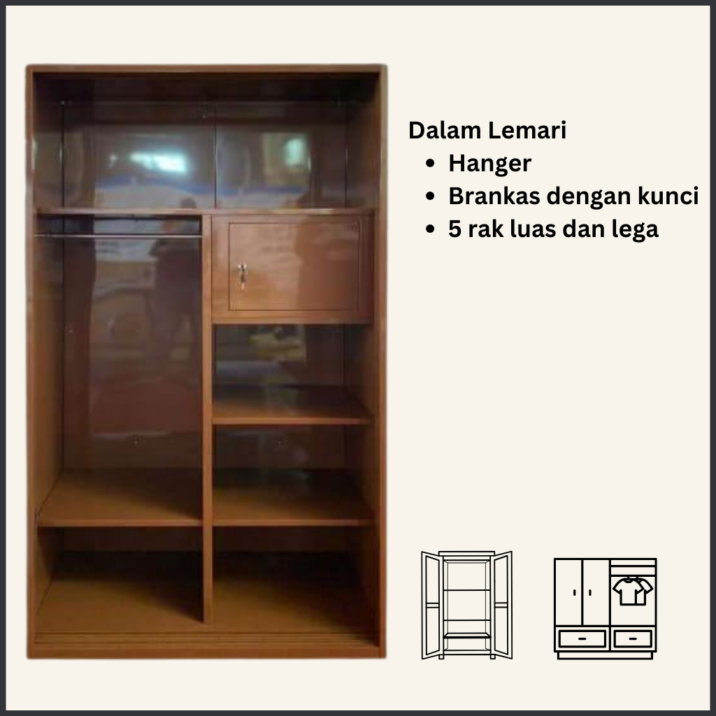 Lemari Pakaian Besi 2 Pintu Minimalis Modern - Almari Baju Besi Gratis Ongkir