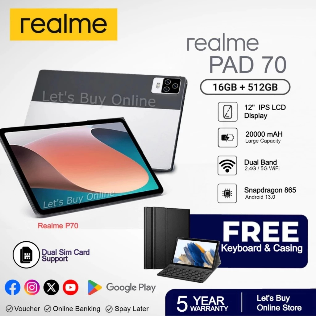 Realme Pad P70 dengan RAM 16GB dan penyimpanan internal 512GB/Realme Pad P70 16GB RAM 512GB ROM