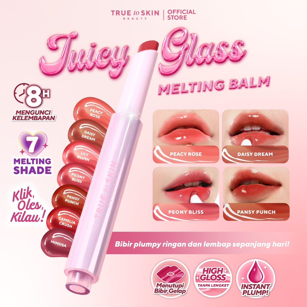 True To Skin - Juicy Glass Melting Balm - Click Pen Melembabkan Bibir , Lightweight , Mencerahkan Bibir Gelap