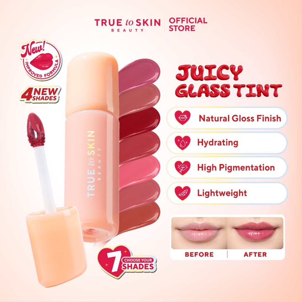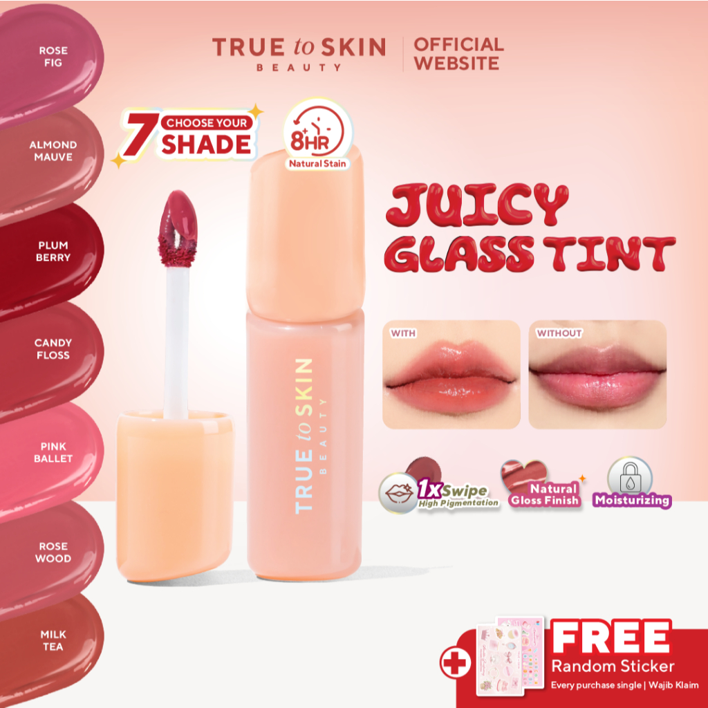 True To Skin - Juicy Glass Tint , Longlasting Stain Anti Kering Ultra Light Tahan Lama 8 Jam Moisturizing (Lip Tint)