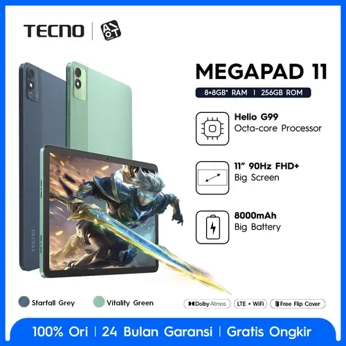 TAB TECNO MEGAPAD 8/256 TABLET TECNO MEGAPAD 11INCH BATERAI 8.000MAH HELIO G99 GARANSI RESMI