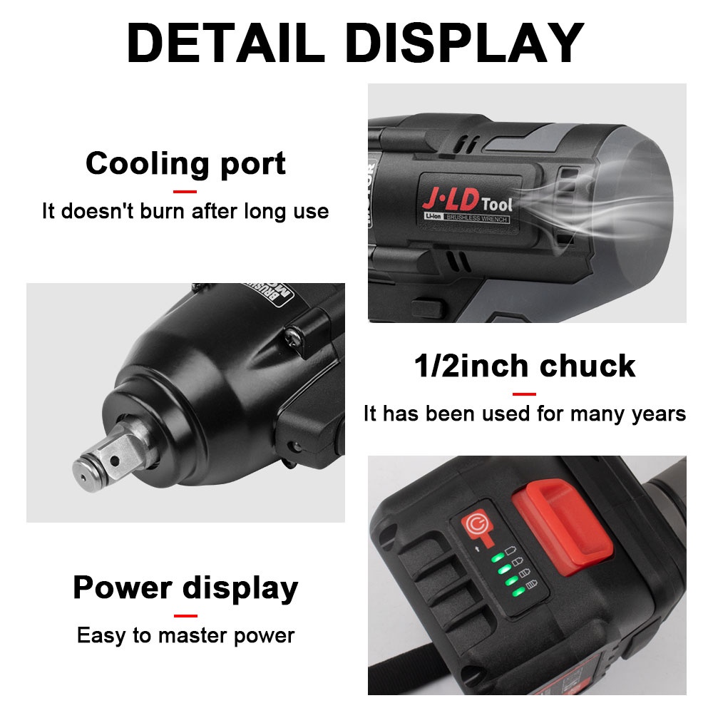 JLD 650N.m Impact Wrench Cordless Torsi Besar Brushless Impact Murah Promo Impek Pembuka Baut Motor Mobil