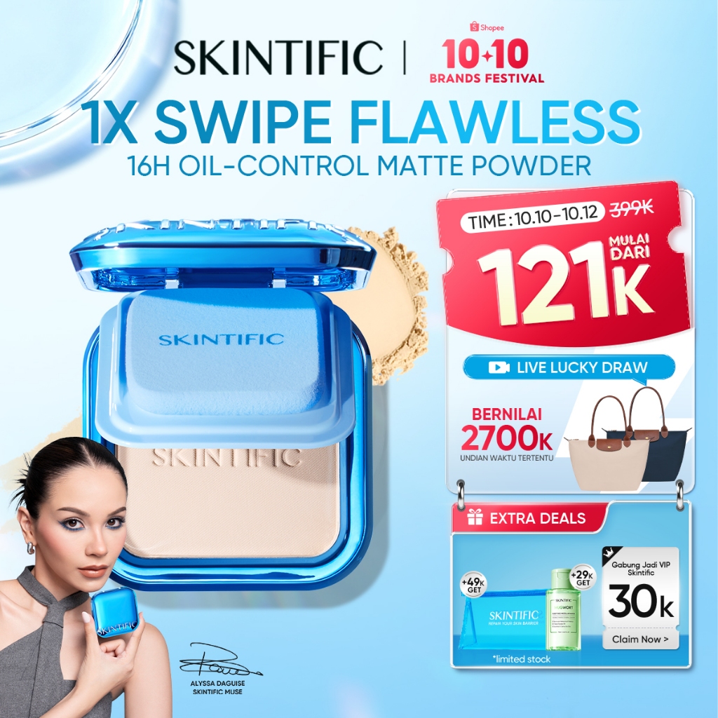 Skintific - Ultra Cover Powder Foundation 9G | Two Way Cake Pressed Powder Matte Bedak Tabur Padat Ori Compact Meratakan