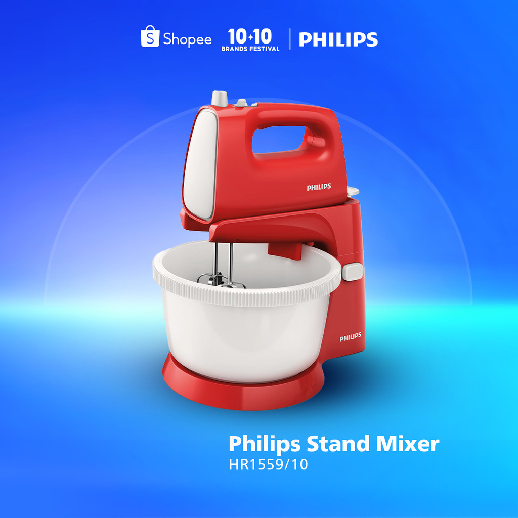 Mixer Philips - 2 Liter - Hr1559/10 - Stand Mixer - Mikser Philips - Mixer Pencampur - Mixer Kue - Merah
