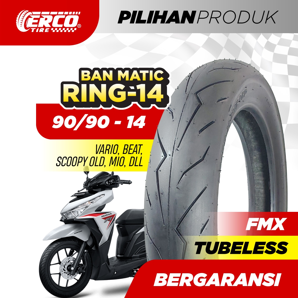 Paket Sepasang Ban Matic Ring 14, Erco Fmx Ukuran 80/90-14 & 90/90-14 Tubeless, Depan & Belakang (Tidak Memakai Ban Dala