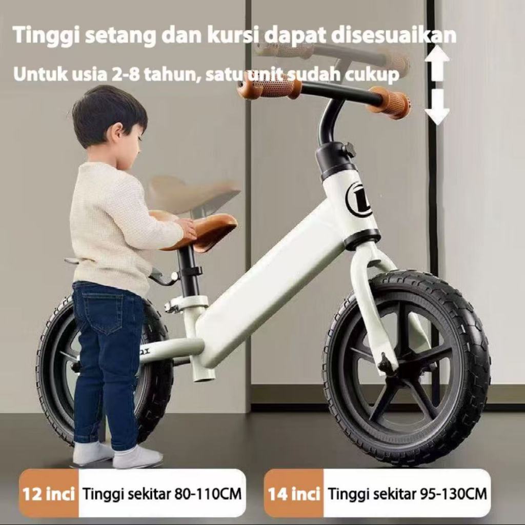 Topborn Sepeda Keseimbangan Anak Sepeda Tanpa Pedal Skuter Roda Berbusa Senyap Balok 12 inci Cocok Untuk Bayi Usia 2-4 T