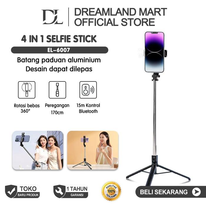 [PROMO] TONGSIS BLUETOOTH 170CM SELFIE STICK 4IN1 360° ROTATION ADJUSTABLE TRIPOD REMOTE LED PUTIH HOLDER STAINLESS WIRELESS TELEPON METAL HITAMLED 1
