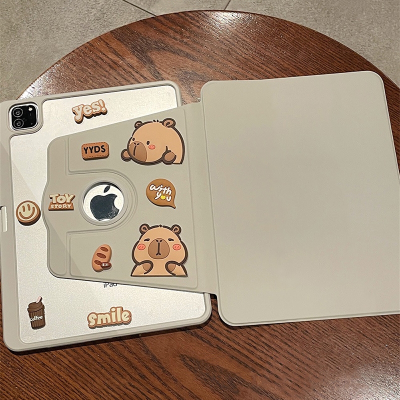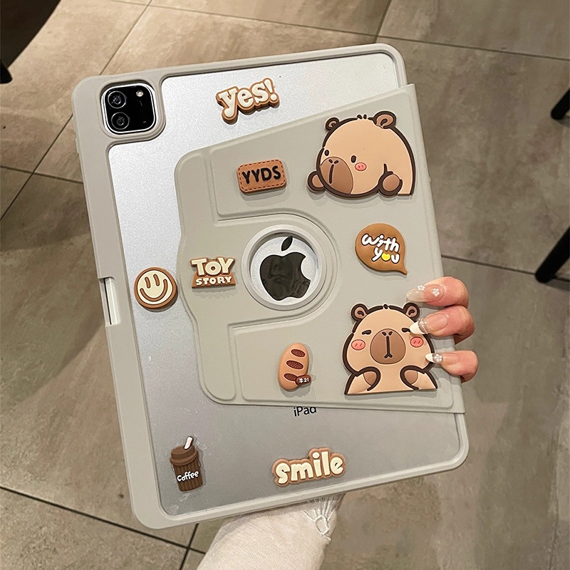 CrashStar 360 Rotating 3D Capybara Transparent Hard Flip Tablet Case For iPad Mini 6 7 8.3 inch iPad 5 6 7 8 9 10 11 Gen