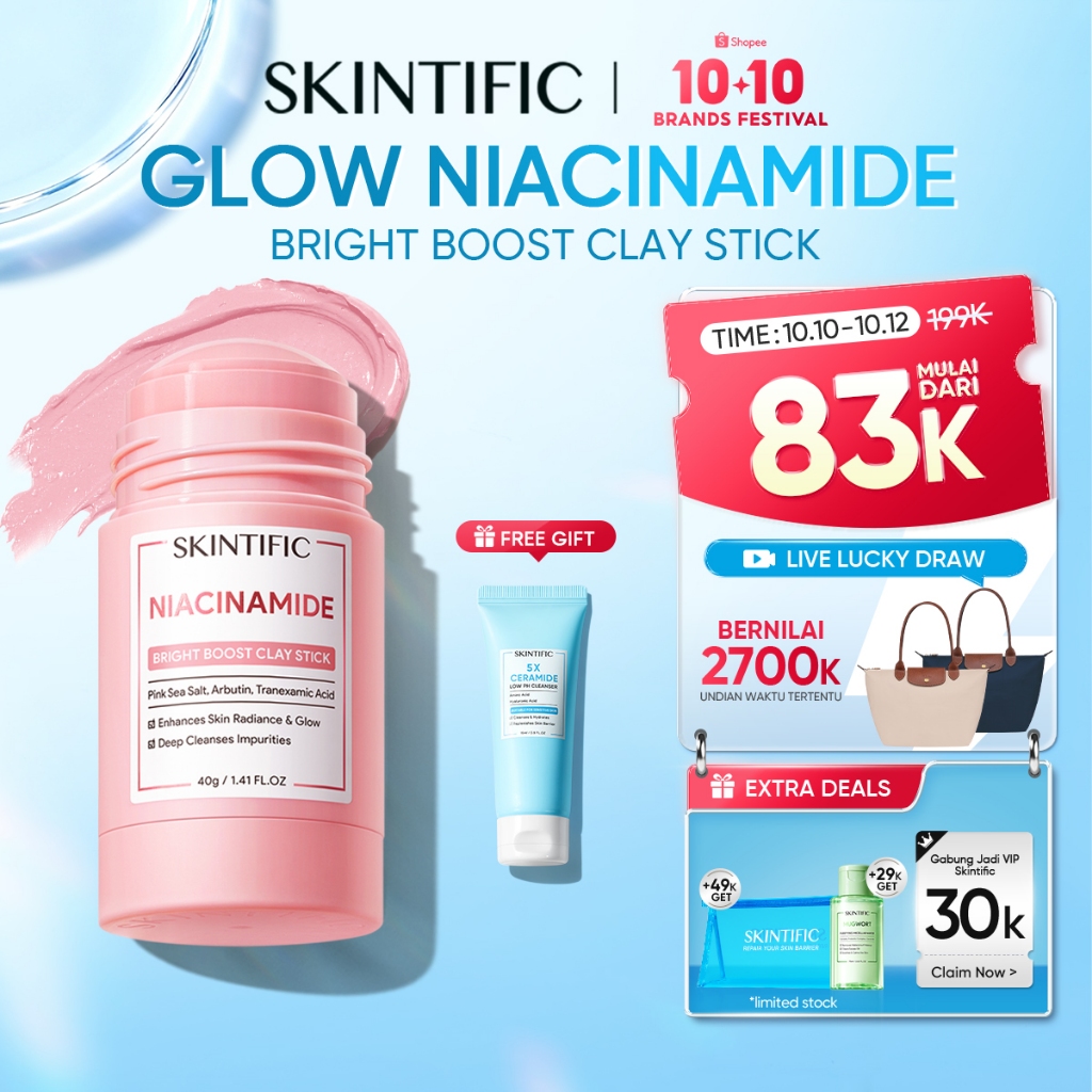 Skintific - Niacinamide Bright Boost Clay Stick 40G | Brightening Glowing Masker Wajah Komedo Skincare Bpom Eksfoliasi W