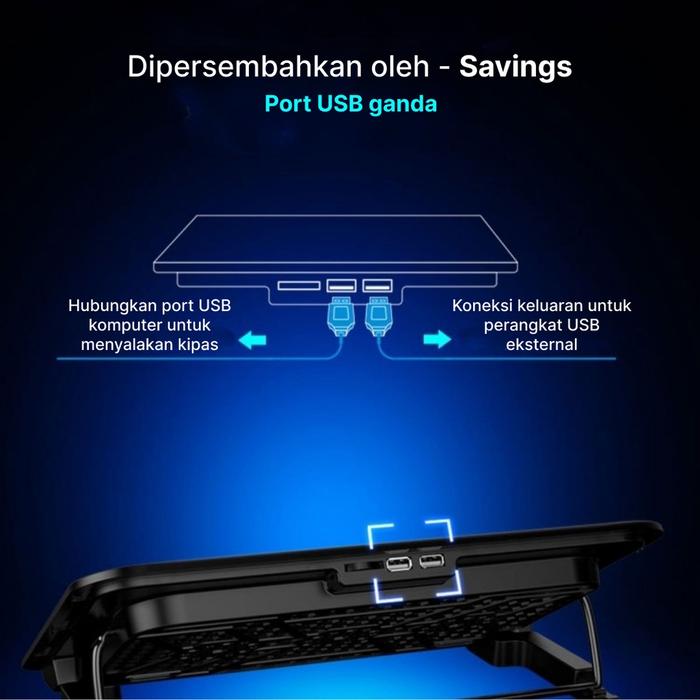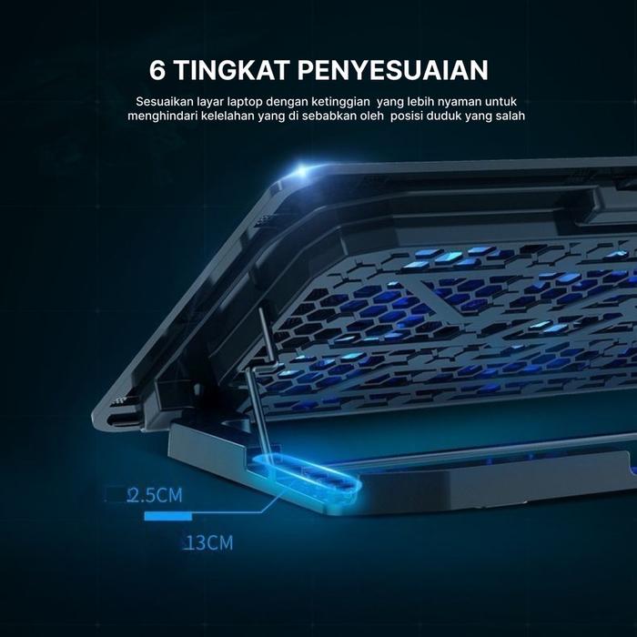 [PROMO] COOLING FAN STAND LAPTOP PORTABLE 6 FANS ADJUSTABLE SPEED TO LED SILENT NOISE COOLER FOLDABLE 17INCH DOUBLE PORT USB BESI KIPAS PAD PENDINGIN COM