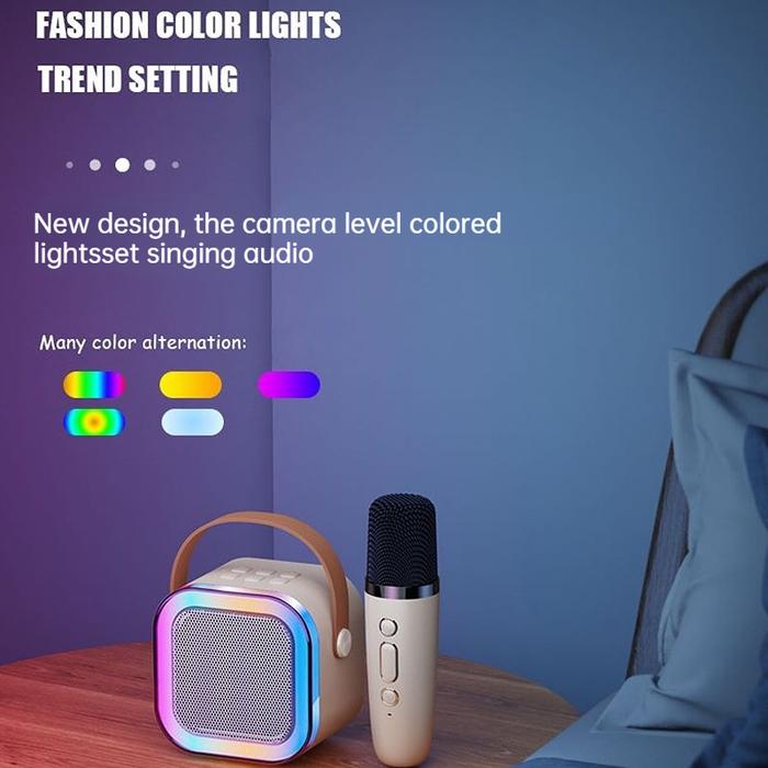 [PROMO] KTV MINI PORTABLE DUAL MICROPHONE BLUETOOTH SPEAKERMINI PORTABLE SUPER BASS HOME KTV RGB LIGHT WIRELESS SPEAKER BIRU LED1MIC