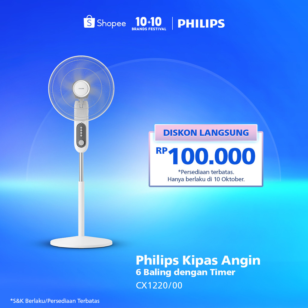 Baru Kipas Angin Philips, Stylish, Baling 6 Dengan Timer - Cx1220/00 - Putih - Lebih Kencang, Lebih Senyap, Dijamin Awe