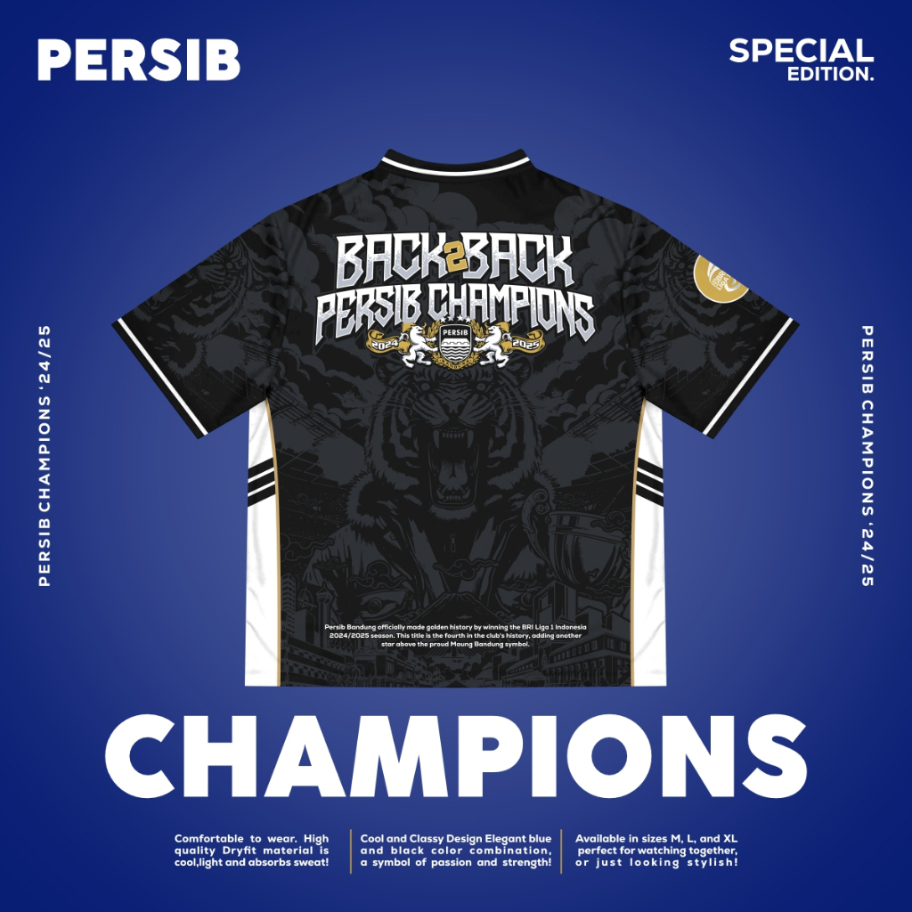 JERSEY PERSIB CHAMPIONS 2025 Kaos Distro Bola Pria Lengan Pendek / baju persib / jersey persib / jersey bobotoh