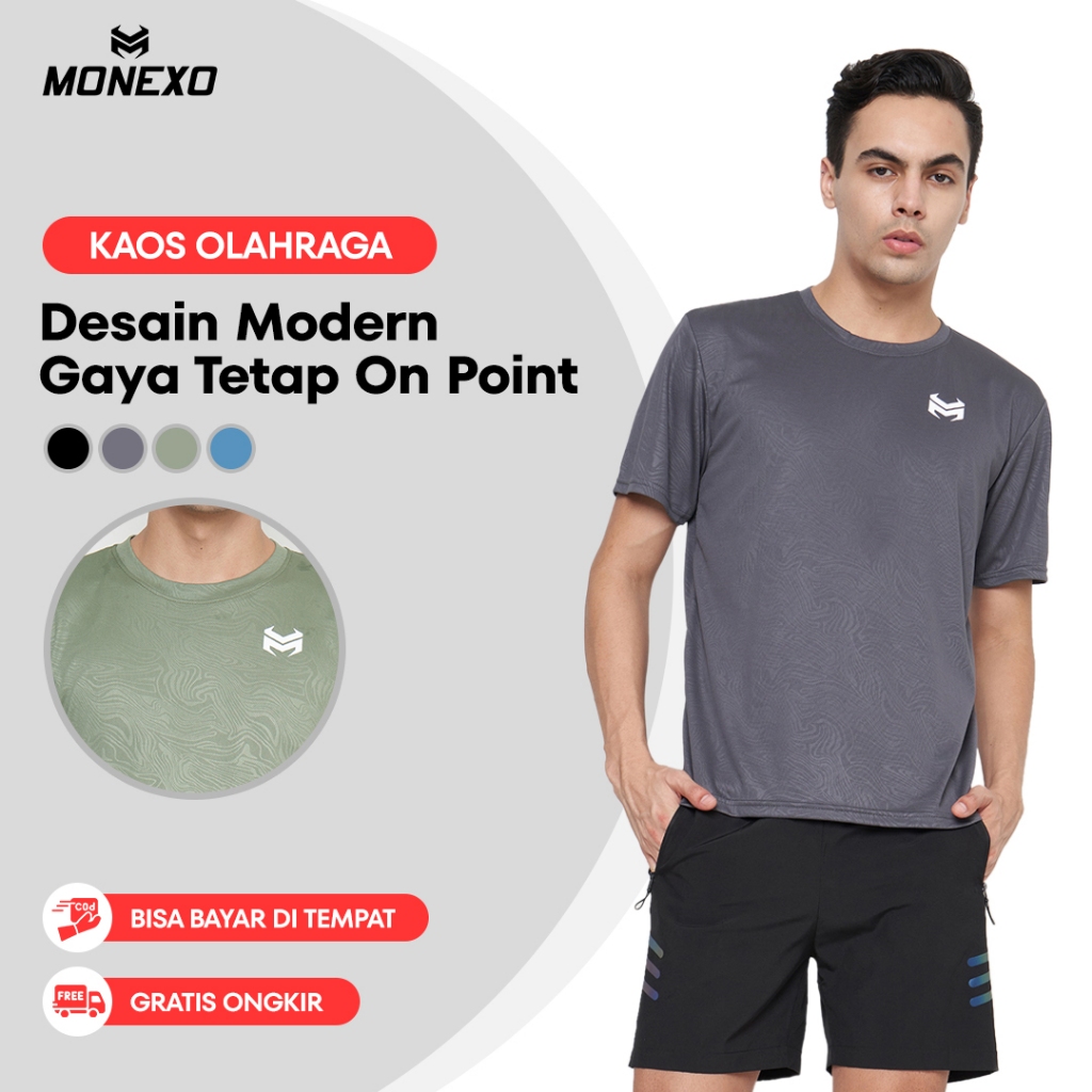 Monexo - Kaos Olahraga Pria Lengan Pendek Baju Running Pria Jersey Trainning Kaos Sport JMN09