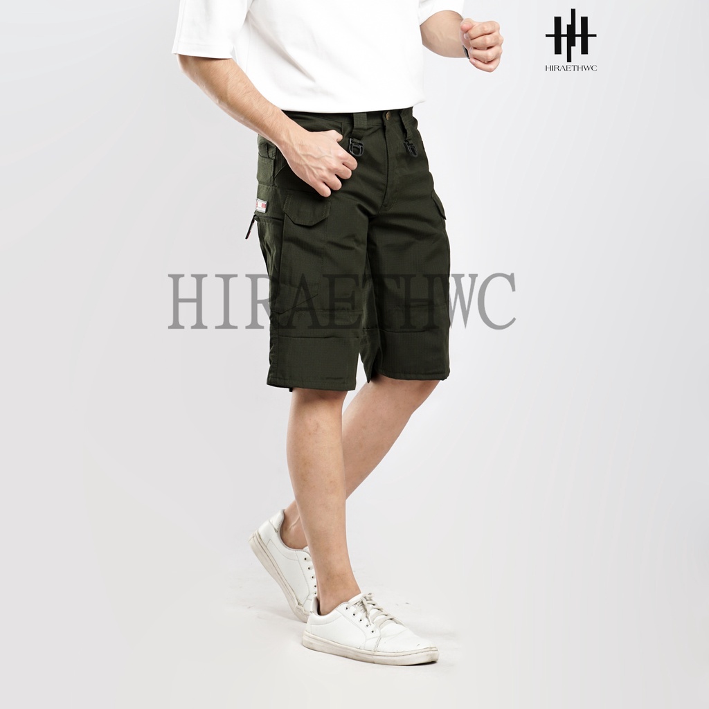 Celana Cargo Pendek Pria Hijau Army Basic Reguler