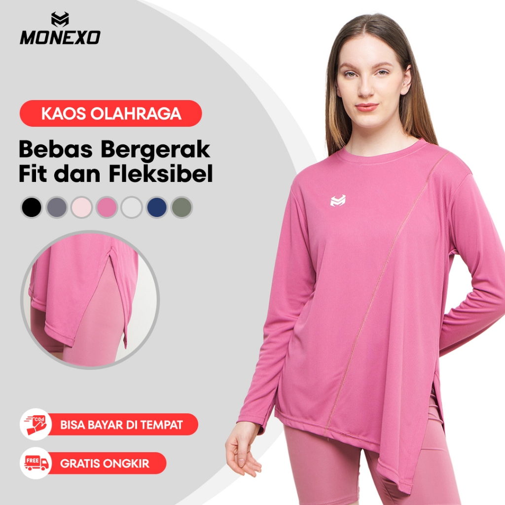 Monexo - Baju Olahraga Wanita Lengan Panjang Hijab Sport T-Shirt Yoga Oversize Run13