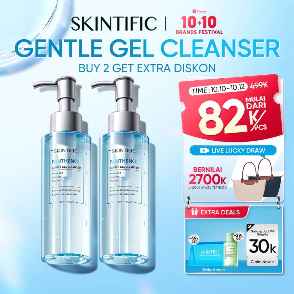 Skintific - Panthenol Gentle Gel Cleanser 120Ml | 3Pcs Oil Control Deep Clean Pembersihan Pori-Pori Calming Facial Wash