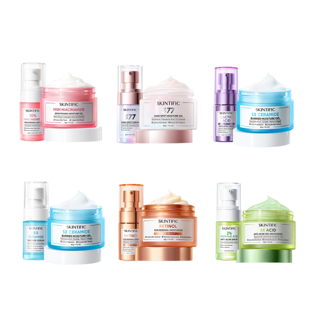 Skintific - 2Pcs Skincare Set | 2In1 Serum Moisturizer Glowing Brightening 377 Dark Spot Barrier Soothing Panthenol Gel