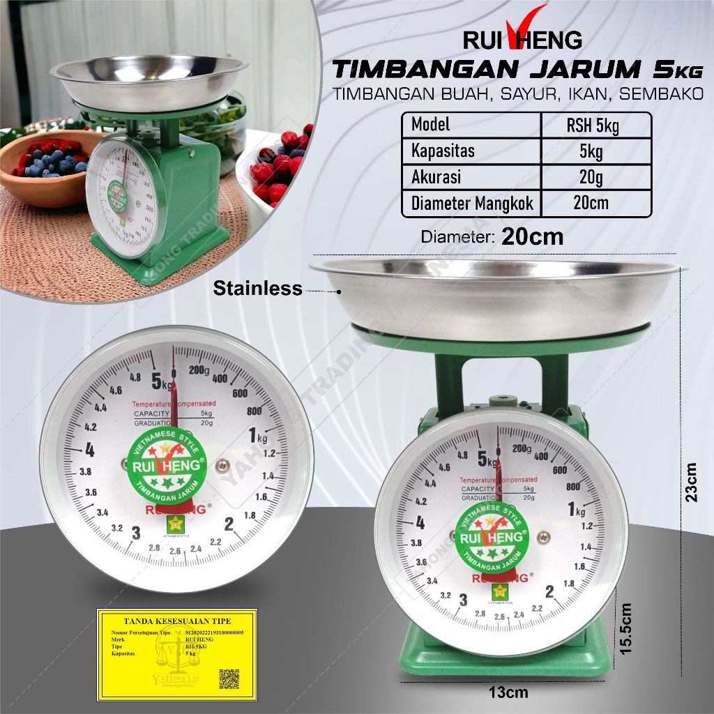 Timbangan Jarum Manual 5kg / Timbangan Buah Sayur Ayam Daging Ikan RUIHENG