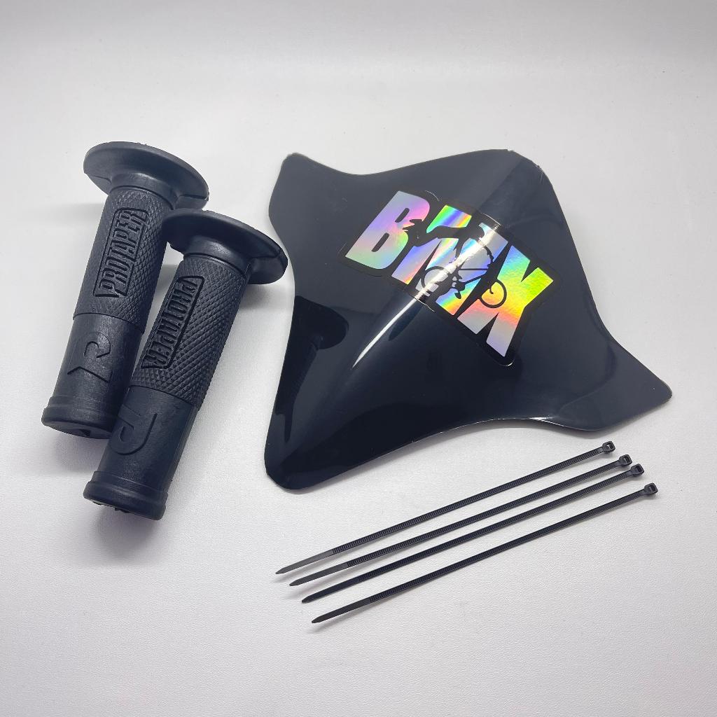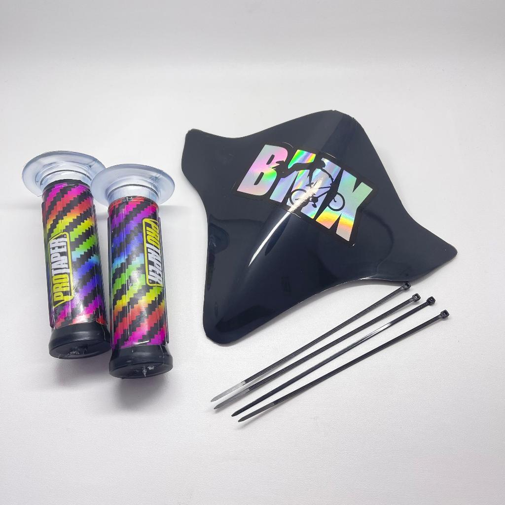 PAKET VISOR SEPEDA BMX+STIKER HOLOGRAM BMX+HANDGRIP PELANGI DAN HITAM