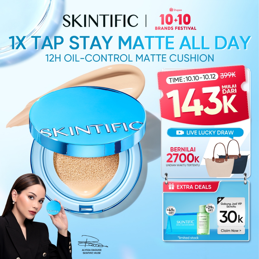Skintific - Perfect Stay Velvet Matte Cushion | Foundation Compact Oil-Control Waterproof Sweatproof Matte Finish Non-Co