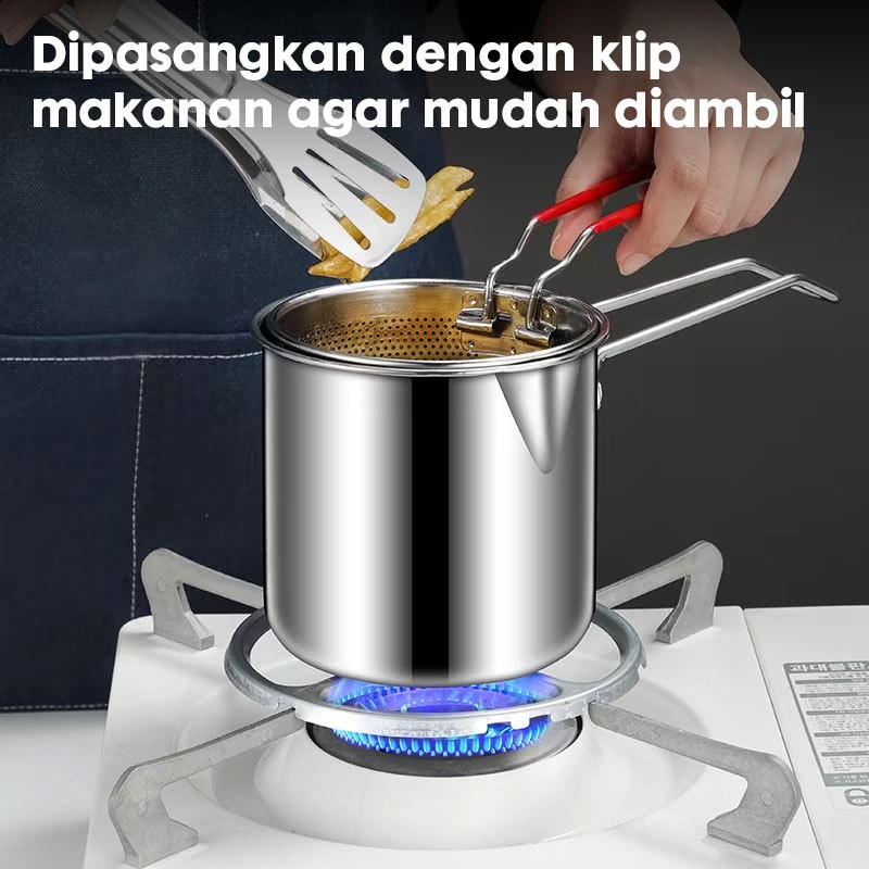 PANCI PENGGORENGAN DEEP FRYER 13CM 5IN1 STAINLESS STEEL MULTI SET SARINGAN PENGGORENGAN KLIP MAKANAN TUTUP KOMPOR