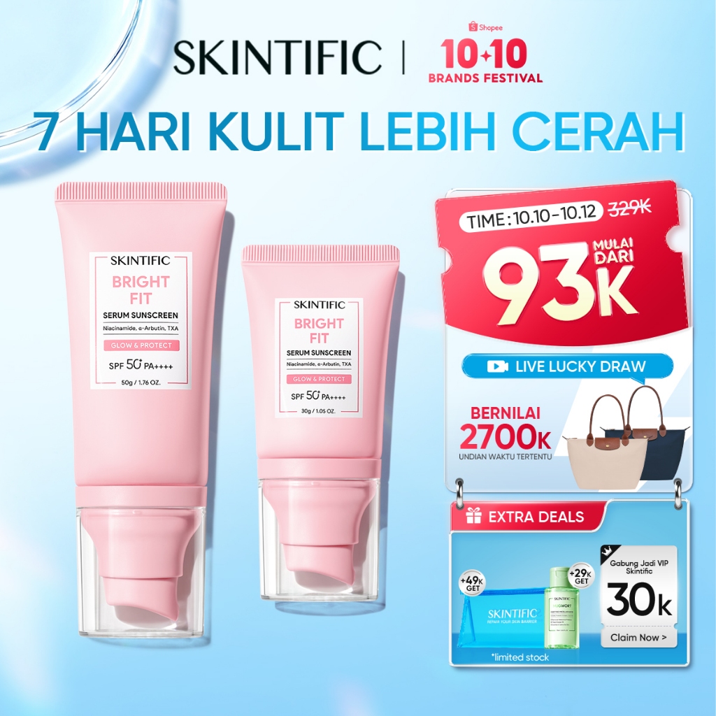 Skintific Niacinamide Bright Spf50+ Sunscreen Wajah Pa++++ 50 Gr Serum Sunblock Tone Up Mencerahkan Tinted Skin Aqua Phy