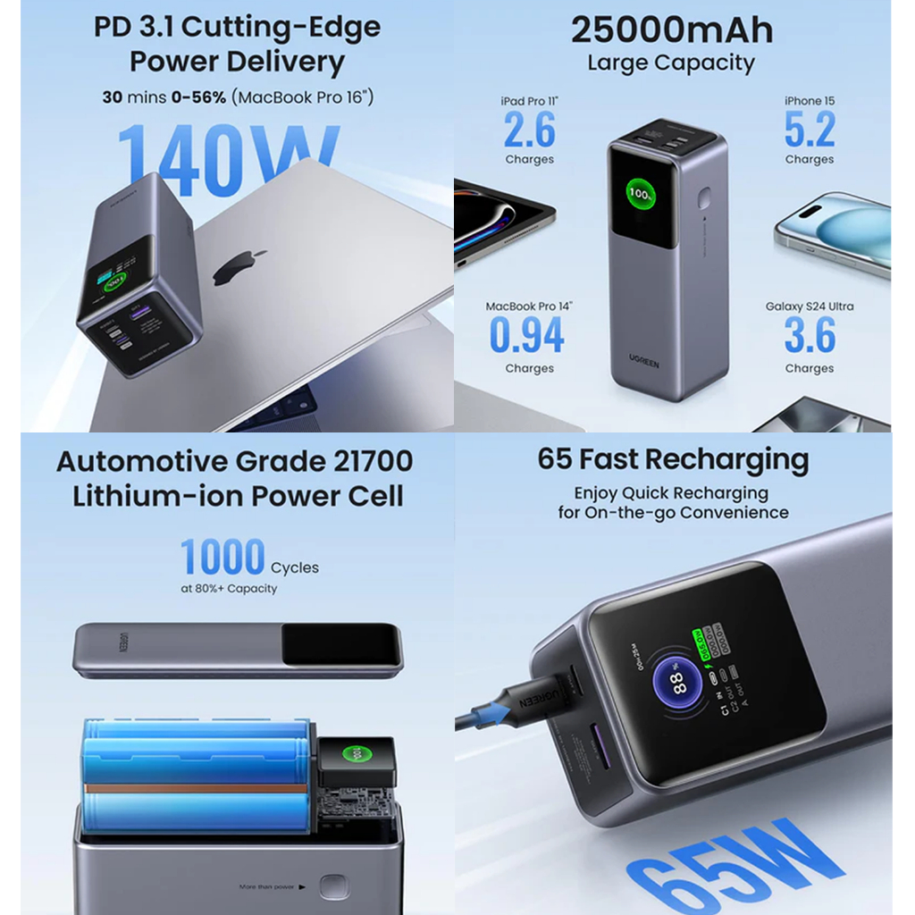 POWERBANK UGREEN FAST CHARGING ORIGINAL POWER BANK FAST CHARGING UGREEN NEXODE POWERBANK 20000MAH 25000MAH SMART DIGITAL