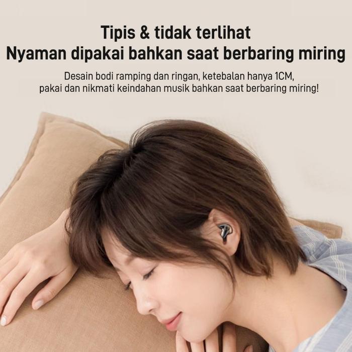 [PROMO] TRUE WIRELESS HEADPHONES WITH MIC BUTTON CONTROL SLEEP HEADSET NOISE REDUCTION EARHOOKS 18JAM HITAM