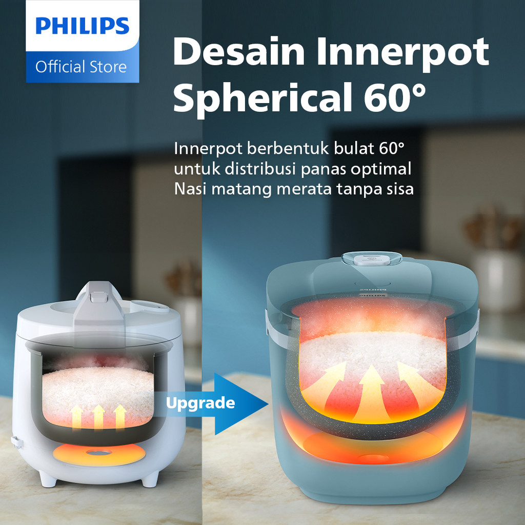 Philips Digital Rice Cooker Magicom 1.8 L - 3000 Digital Series Hd4716/33 - Biru - 16 Menu Masak - Anti Lengket - Freshd