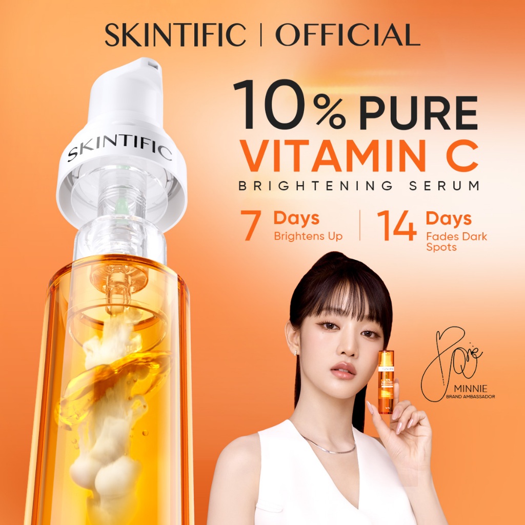Skintiflc - 10 PERSEN Pure Vitamin C Fresh Brightening Serum | Mencerahkan Dark Spot Tumpas Komedo Anti Aging Tone Up Whitenin