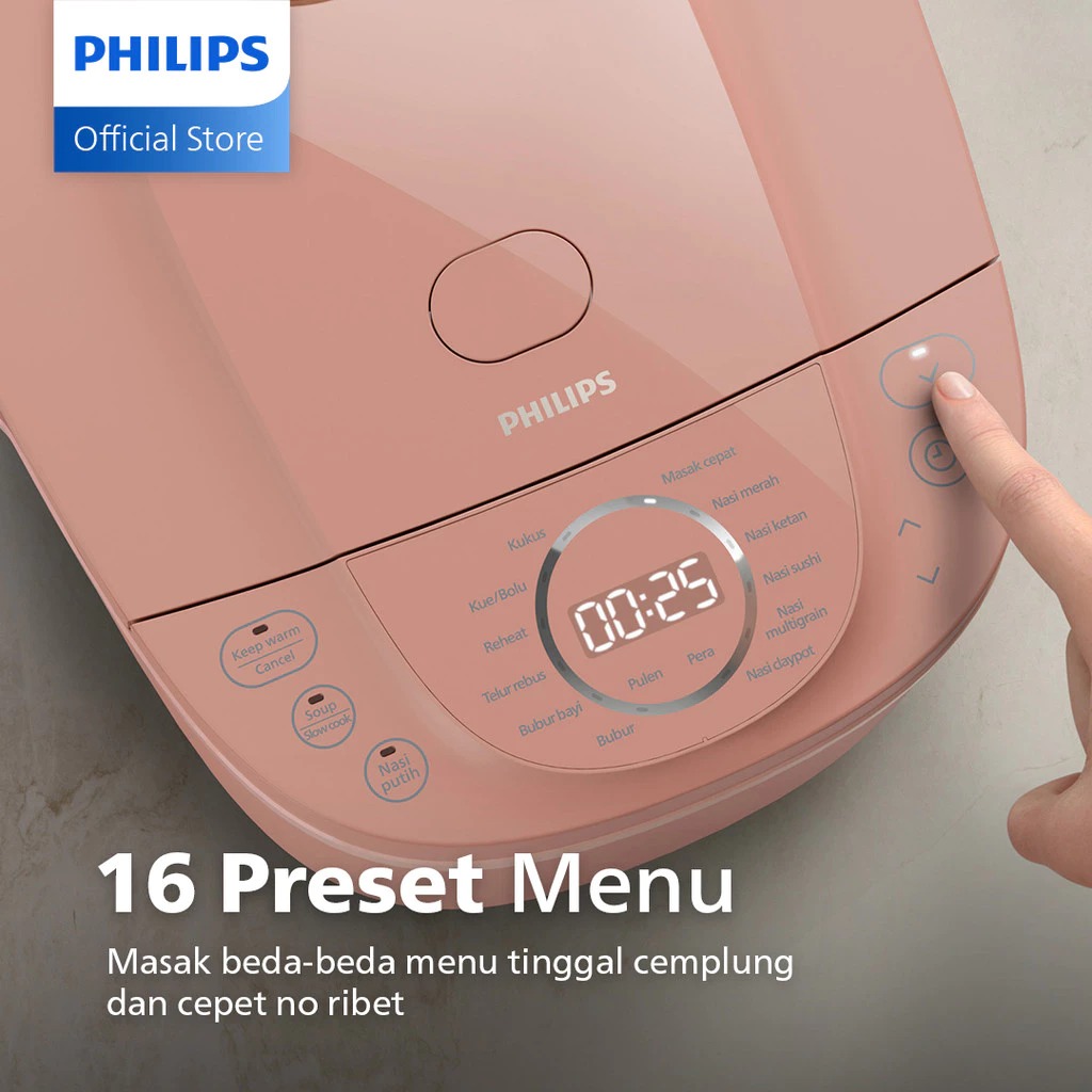 Mejikom - Rice Cooker Philips Digital - Magicom 1.8 L - 3000 Digital Series HD4716/31 - Pink - 16 anti lengket